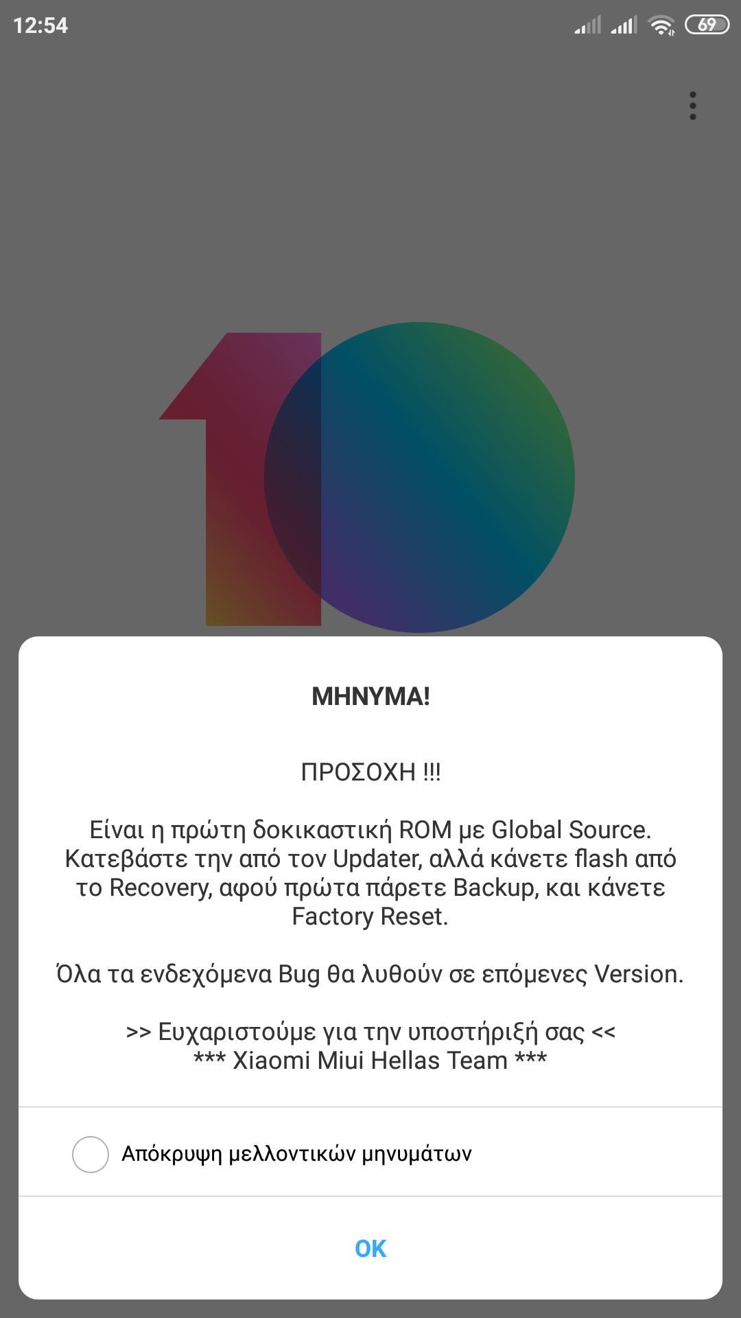 Καλημέρα σας! Σας έχω στείλει δύο φωτό για πληροφορίες! Για την πρώτη, ενώ εχω κάνει αναβάθμιση από το πρόσφατο email σε developer και όχι stable! Τι γίνεται; Και την δεύτερη, πώς φεύγει το ενοχλητικό μήνυμα;