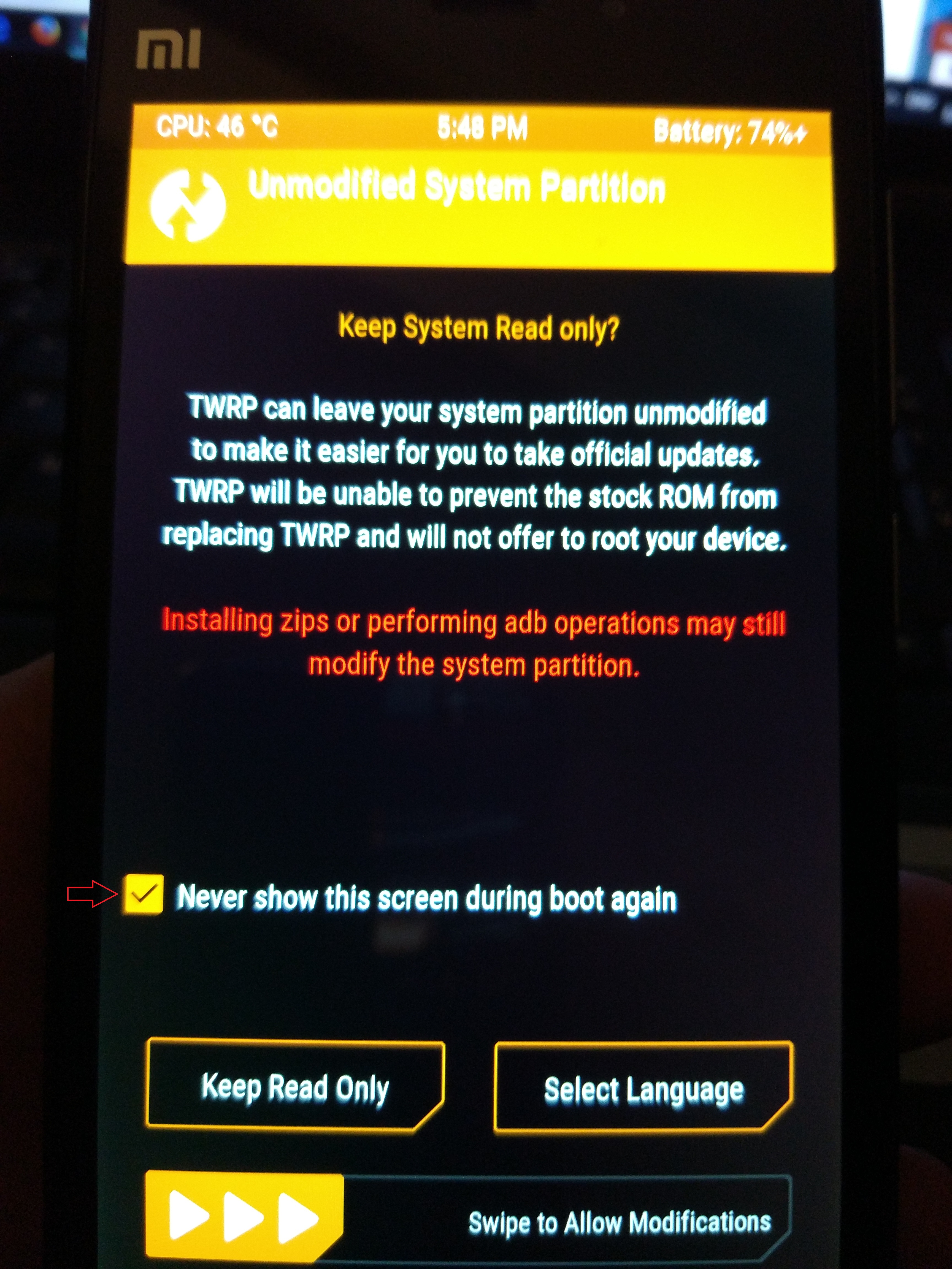 Χαιρετισμούς σε όλα τα παιδιά του forum και πολλές ευχαριστίες. Χωρίς την πολύτιμη βοήθεια σας θα ειμασταν φτωχοτεροι (και σίγουρα με άλλο κινητό χρυσοπληρωμένο). Είμαι κάτοχος του Xiaomi Mi5 εδώ και 1 μήνα. Έχω κάνει όλες τις διαδικασίες για να έχω την τελευταία developer έκδοση. Το θέμα μου είναι ότι σε κάθε εβδομαδιαία αναβάθμιση που κάνω έχω θέμα με το TWRP. Αν κάνω την αναβάθμιση μέσω της Rom (εφαρμογή αναβάθμιση, επιλογή πακέτου εγκατάστασης) δεν μου κάνει wipe cache (βγάζει κάποιο μήνυμα με κόκκινα γράμματα couldn't mount data κτλ πριν flasharei τη νέα rom). Αν κάνω αναβάθμιση μέσω TWRP (και αν μπω στο TWRP οποιαδήποτε στιγμή) δεν έχω πρόσβαση στο internal storage. Βγάζει χωρητικότητα 0mb. Η μόνη λύση για flash μέσω TWRP είναι να ξαναπερναω το TWRP είτε μέσω pc (fastboot) είτε μεσω rom ( flashify). Τότε μου εμφανίζεται η internal storage, κάνω wipe cache κτλ αλλα η αναβάθμιση δεν ολοκληρώνεται γιατί κολλάει πριν flasharei το supersu και κάνει reboot system μόνο του. (αποτέλεσμα να δουλεύει η rom αλλά χωρίς root, Dolby atmos κ. α). Υπάρχει περίπτωση να βοηθήσει κάποιος; ευχαριστώ προκαταβολικά.