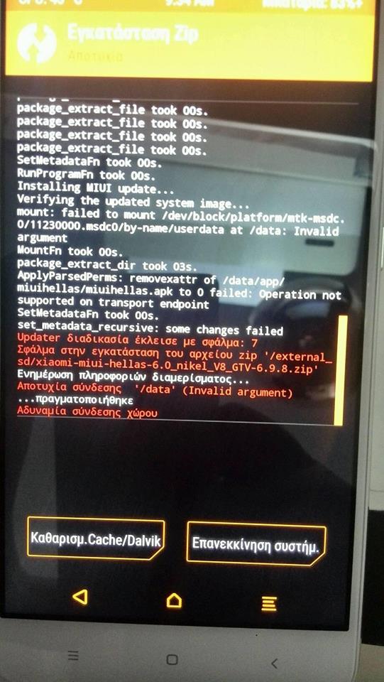 Για την περίπτωση που υπάρξουν μηνύματα με κόκκινα γράμματα τύπου Error mount θα πρέπει πιθανά να κάνουμε format data..