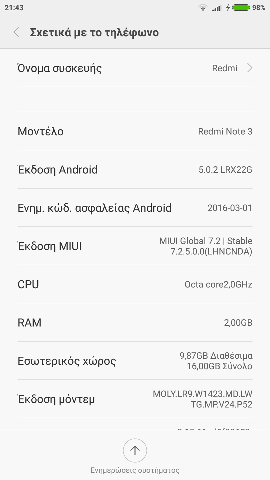 Καλησπερα! εχω στα χερια μου το RN3 με global rom η οπως αλλιως λεγεται.. οπως το πηρα δηλαδη απο το κινεζομαγαζο to2c.. το τηλεφωνο σημερα μ εκανε ενα παιχνιδι με τη φωτεινοτητα, δεν ανοιγε απο τη μεση και πανω.. δηλαδη τι στη μεση τι στο φουλ ηταν το ιδιο.. εφτιαξε μετα απο λιγο.. ενα φιλο που ρωτησα μου λεει να περασω μια ρομ αλλη.. το τηλεφωνο πολυ πολυ λιγο ψιλολαγκαρει σε καποιες εφαρμογες στο πρωτο δευτερολεπτο και μετα παει νερακι.. επειδη ειμαι ψιλοασχετος οποιος μπορει ας βοηθησει!τις πρωτες μερες δεν λαγκαρε καθολου καθολου ομως..