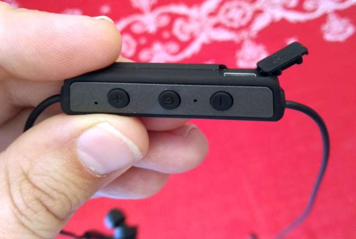Τα δύο ακουστικά όπως φαίνεται και στις φωτογραφίες, ενώνονται μεταξύ τους μ' ένα καλώδιο μήκους 72 cm. Κάπου λίγο πριν την μέση, βρίσκεται ένα κουτάκι θα το πω έγώ, όπου επάνω του βρίσκονται 3 κουμπιά και η θύρα microusb μέσω της οποίας φορτίζετε τα ακουστικά. Το κεντρικό κουμπί έχει 3 κουμπιά επάνω του, 2 για την φωνή ή για μπροστά/πίσω για την μουσική και ένα για power on/off και απαντάτε σε κλήσεις. Τα ακουστικά έχουν ενσωματωμένο μικρόφωνο.