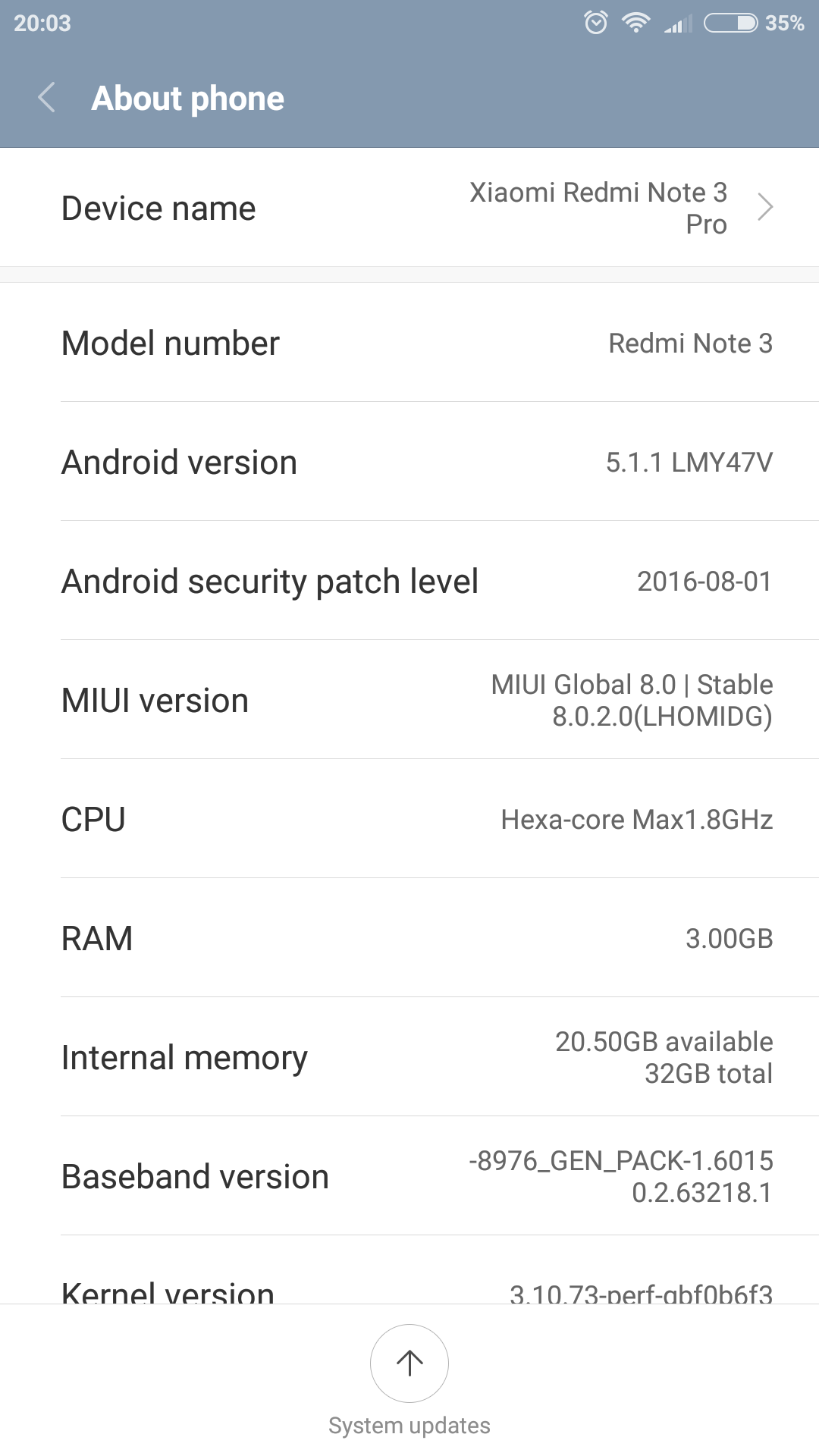 εχεις δηλωμένο στο προφιλ σου Mi3w και γράφεις στο Sub-Forum για το Redmi Note 3 Pro. Σε ποια από τις δύο συσκευές αναφέρεσαι? Καλό θα ήταν να ανεβάσεις ένα screensht από το Settings/About Phone να δούμε ακριβώς ποια rom έχεις. -