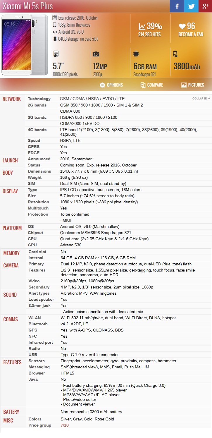 Καρφιτσωμένο Τεχνικά Χαρακτηριστικά Mi-5s Plus