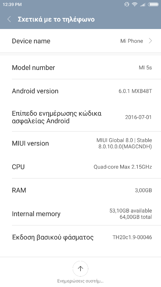 Δημιουργία νέου λογαριασμούΑς ξεκινήσουμε με ένα screenshot από το /Ρυθμίσεις/Σχετικά με το τηλ να δούμε ποια είναι η rom που έχεις. Να υποθέσω ότι έχεις Mi Account & ενεργή άδεια ξεκλειδώματοςΟ/H Bill Bekiaris έγραψε: