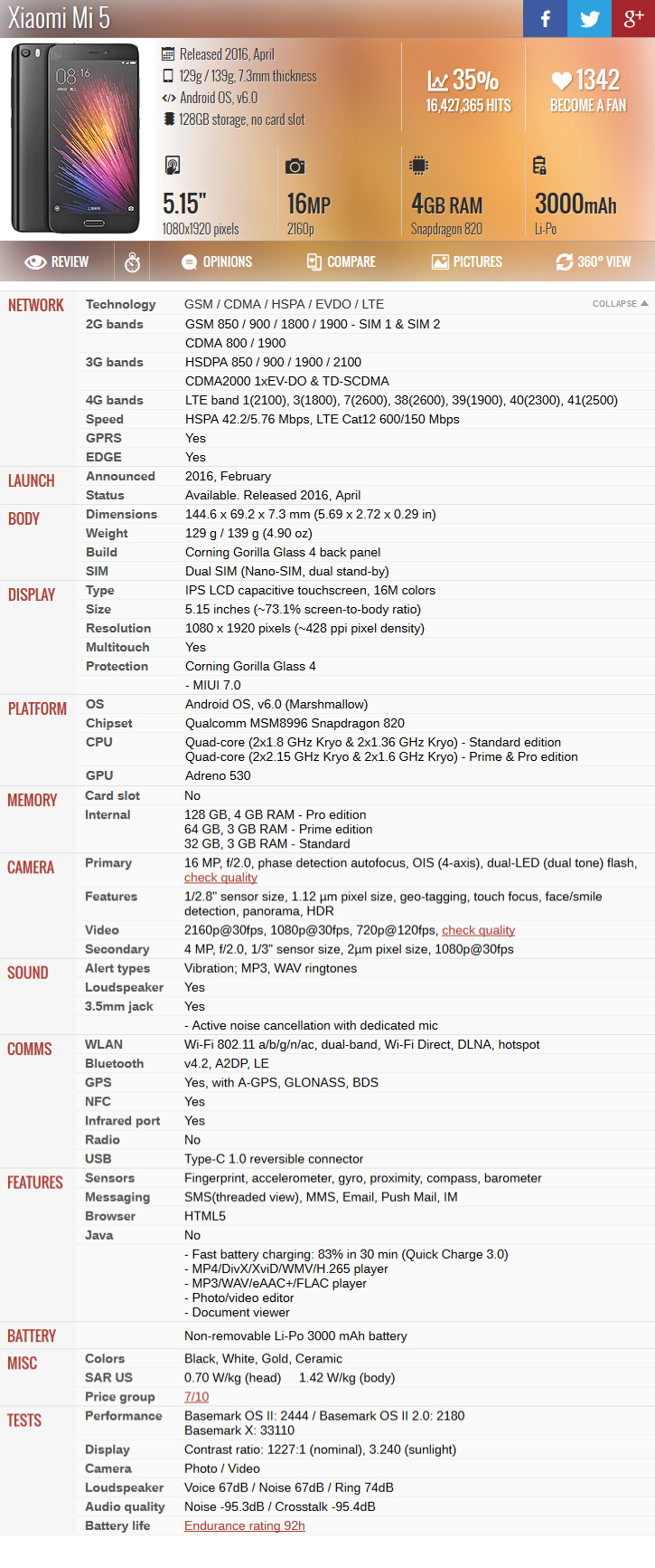 Καρφιτσωμένο Τεχνικά Χαρακτηριστικά Mi-5