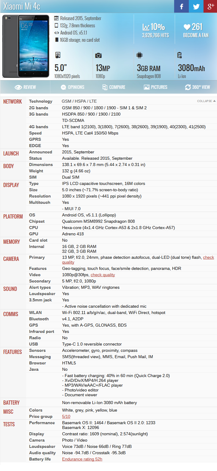 Καρφιτσωμένο Τεχνικά Χαρακτηριστικά Mi-4c