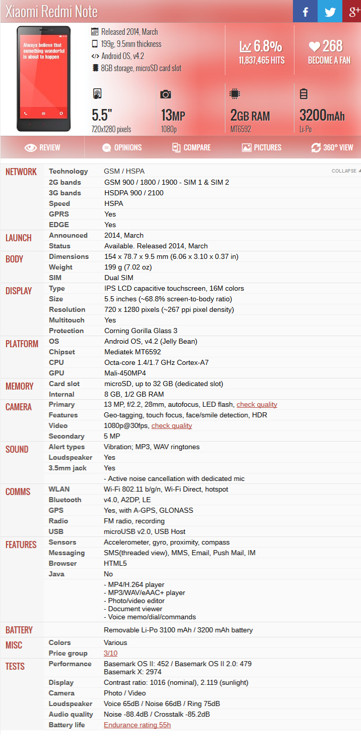 Καρφιτσωμένο Τεχνικά Χαρακτηριστικά Redmi Note 3G