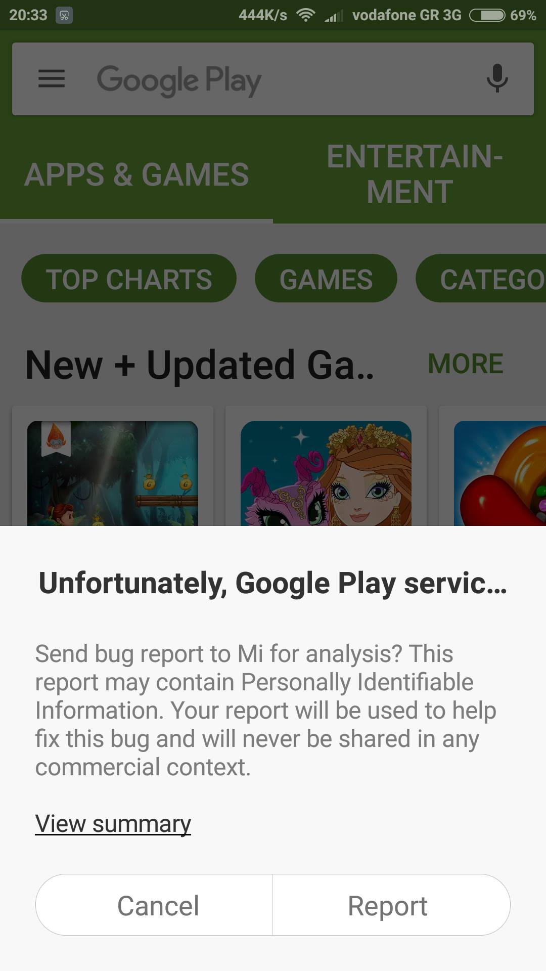 Ένα παράξενο πρόβλημα έχει παρουσιαστεί σε Mi4 φίλου. Συνεχώς crashάρουν τα Google Play Services. Δοκιμάσαμε Wipe Dalvik και Cache, διαγραφή των αρχείων της εφαρμογής, αφαίρεση του λογαριασμού google και ξαναπέρασμα. Διαγραφή μιας αράδας εφαρμογών και έλεγχο στα permissions. Τζίφος. Έχετε να προτείνετε κάτι