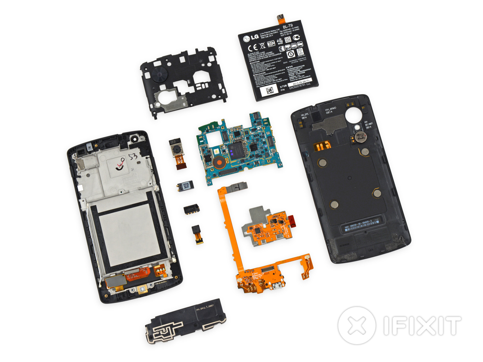 Αυτό, ωστόσο, δε φαίνεται να ισχύει στην περίπτωση του Nexus 5, το οποίο, όπως διαβάζουμε, ήταν αρκετά εύκολο να ανοίξει, ενώ εξαρτήματα όπως το ηχείο ή η υποδοχή των ακουστικών αρκετά εύκολο να αντικατασταθούν.