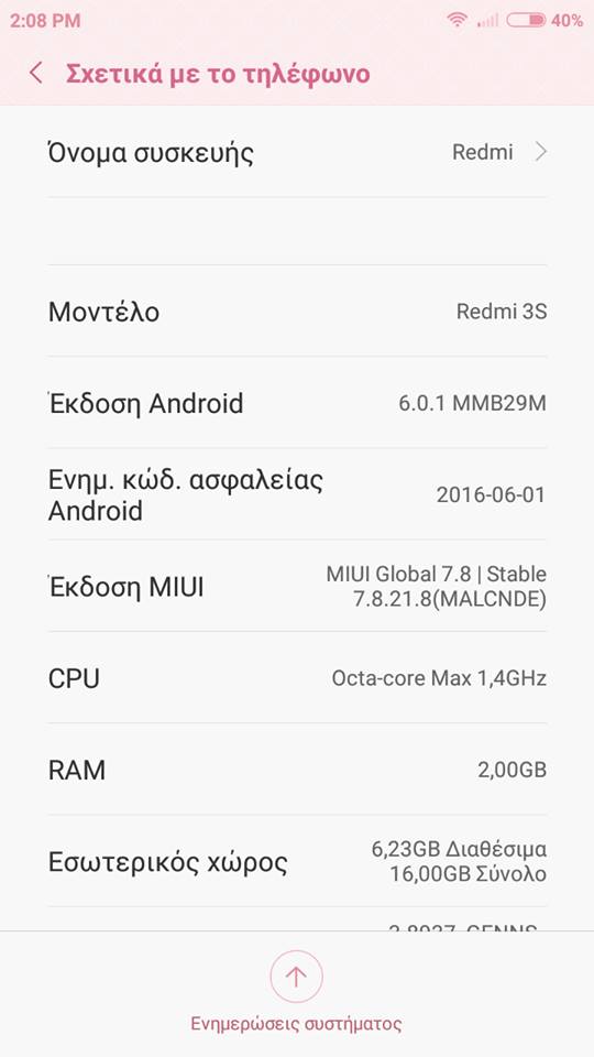 Καταρχάς η συσκευή σου είναι το Redmi 3s με κωδική ονομασία LAND.