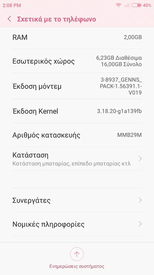 Θέλουμε screenshot απο το about phone, δηλαδή θα πας settings -> κάτω κάτω about phone και θα μας δώσεις τι βγάζει. -