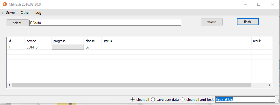 9. Επιλέγουμε στο κάτω μέρος το clean all και Flash_all.bat, πατάμε το refresh. Θα πρέπει μετά από τα παραπάνω να βλέπουμε την παρακάτω εικόνα: