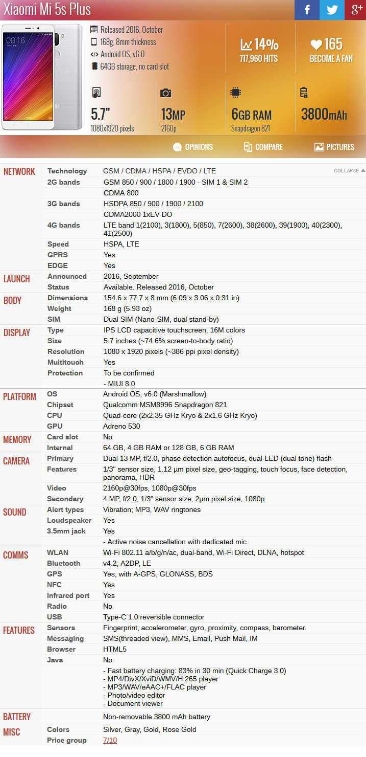 Καρφιτσωμένο Τεχνικά Χαρακτηριστικά Mi-5s Plus