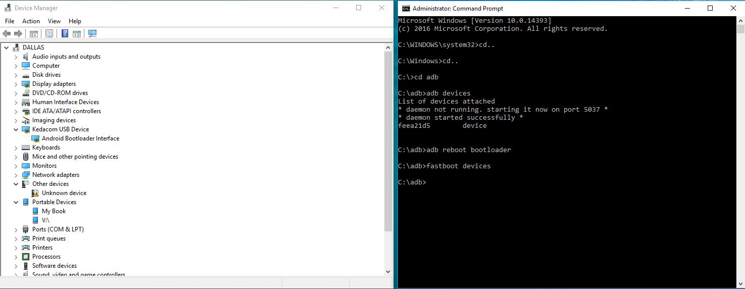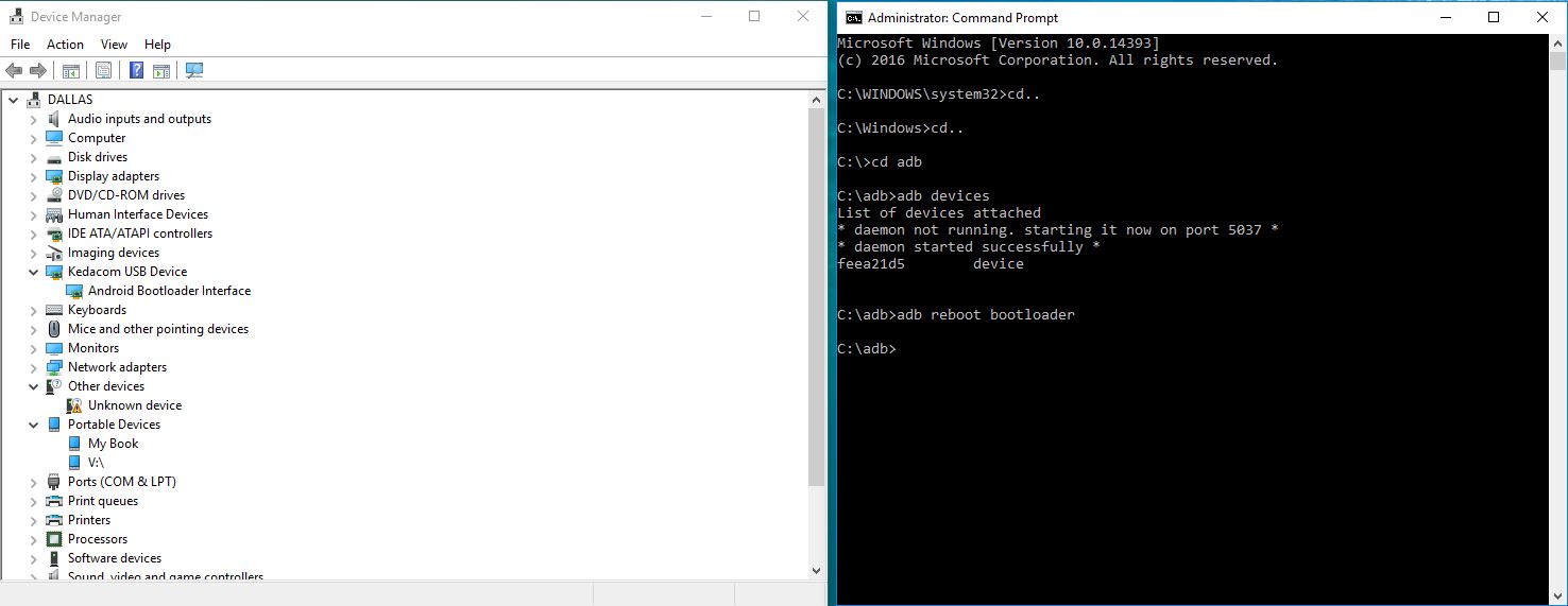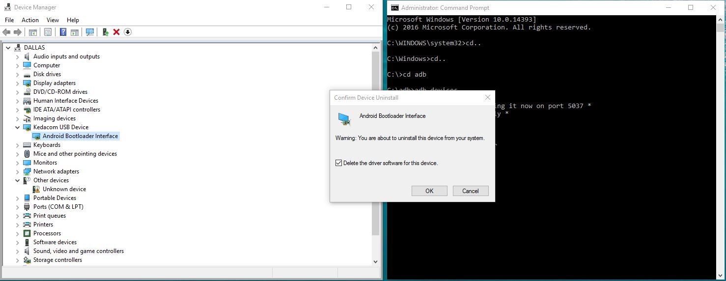 Δηλαδή ως "Kedacom USB Device". Με το που γίνεται αυτό χάνεται και η επικοινωνία του κινητού με τις εντολές fastboot και γενικότερα για να μπορέσει κάποιος να φλασάρει όπως μπορείτε να δείτε στην δεύτερη φωτογραφία. Έδινα την εντολή fastboot devices και δεν έστελνε τίποτα πίσω.