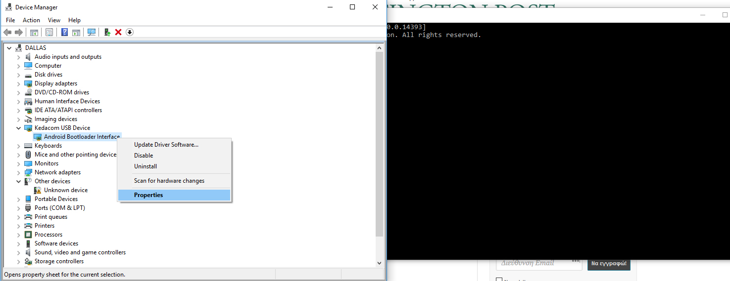 4) Κάνουμε τώρα δεξί κλικ με το ποντίκι επάνω στο Android Bootloader Interface και επιλέγουμε Properties όπως φαίνεται στην παρακάτω φωτογραφία: