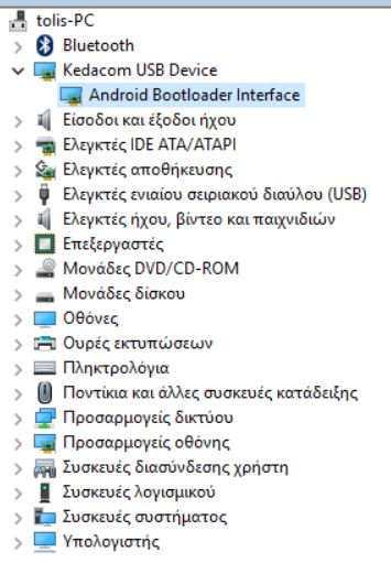 3) Περιμένουμε μέχρι να φορτώσει πλήρως τον Driver και να δούμε στο Device Manager ότι μας εμφανίζεται το κινητό ως "Kedacom USB Device" όπως φαίνεται στην παρακάτω φωτογραφία: