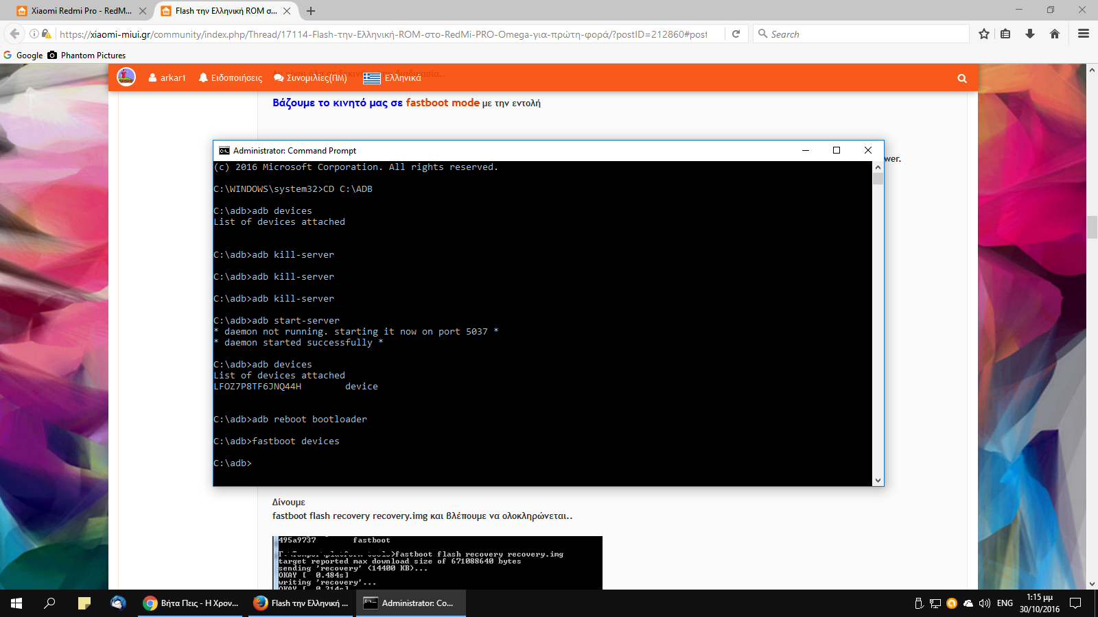 Μόλις παρέλαβα το redmi Pro και δε μπορώ να δω αν είναι αν ειναι κλειδωμένο το από το fastboot. Κάνω βήμα βήμα τις οδηγίες που έχετε και όταν πατάω στο cmd, fastboot devices απλά δε μου βγάζει τίποτα από κάτω.