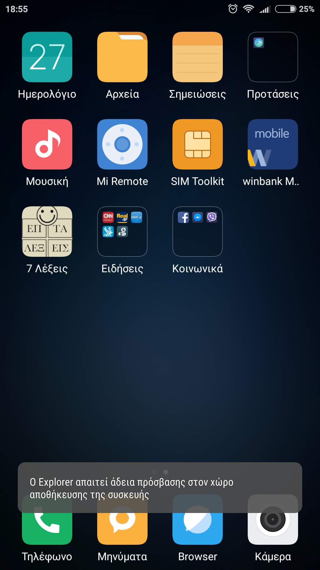 Παιδιά δείτε λίγο τι βγάζει το κινητό ενός φίλου μου (Redmi 4 pro) όταν πατάει να μπει στον file Explorer. Δεν μπορεί να το ανοίξει και του βγάζει αυτό το μήνυμα. Τι κάνουμε?