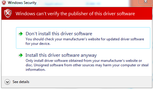 Έχεις πατήσει την δεύτερη επιλογή που λέει "Install the driver software anyway" ?