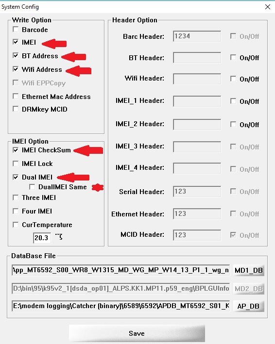 - θα τικάρουμε τα κουτάκια IMEI, BT Address & Wifi Address