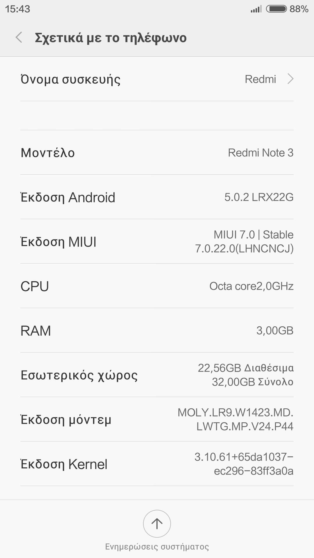 Η εκδοση που εχει ειναι η MIUI 7.0 STABLE (7.0.22.0 LHNCNCJ).