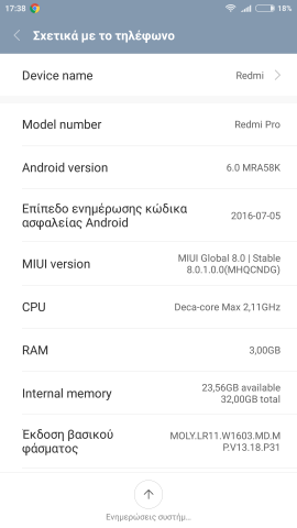 Καλησπέρα.Μολις αγορασα ενα xiaomi redmi pro αλλα το κινητό δεν κανει αναβάθμιση.