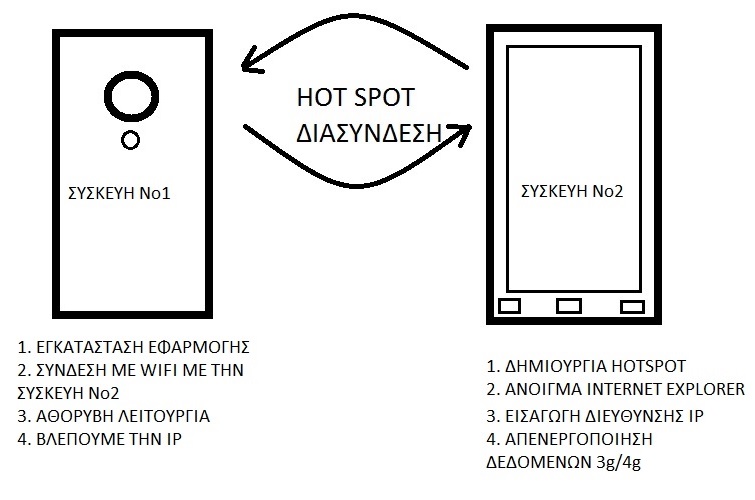 - Στη συσκευή Νο2 απενεργοποιήθηκαν τα δεδομένα ώστε να μην δέχεται ενημερώσεις e-mails κλπ η συσκευή Νο1 μέσω της διασύνδεσης hotspot.