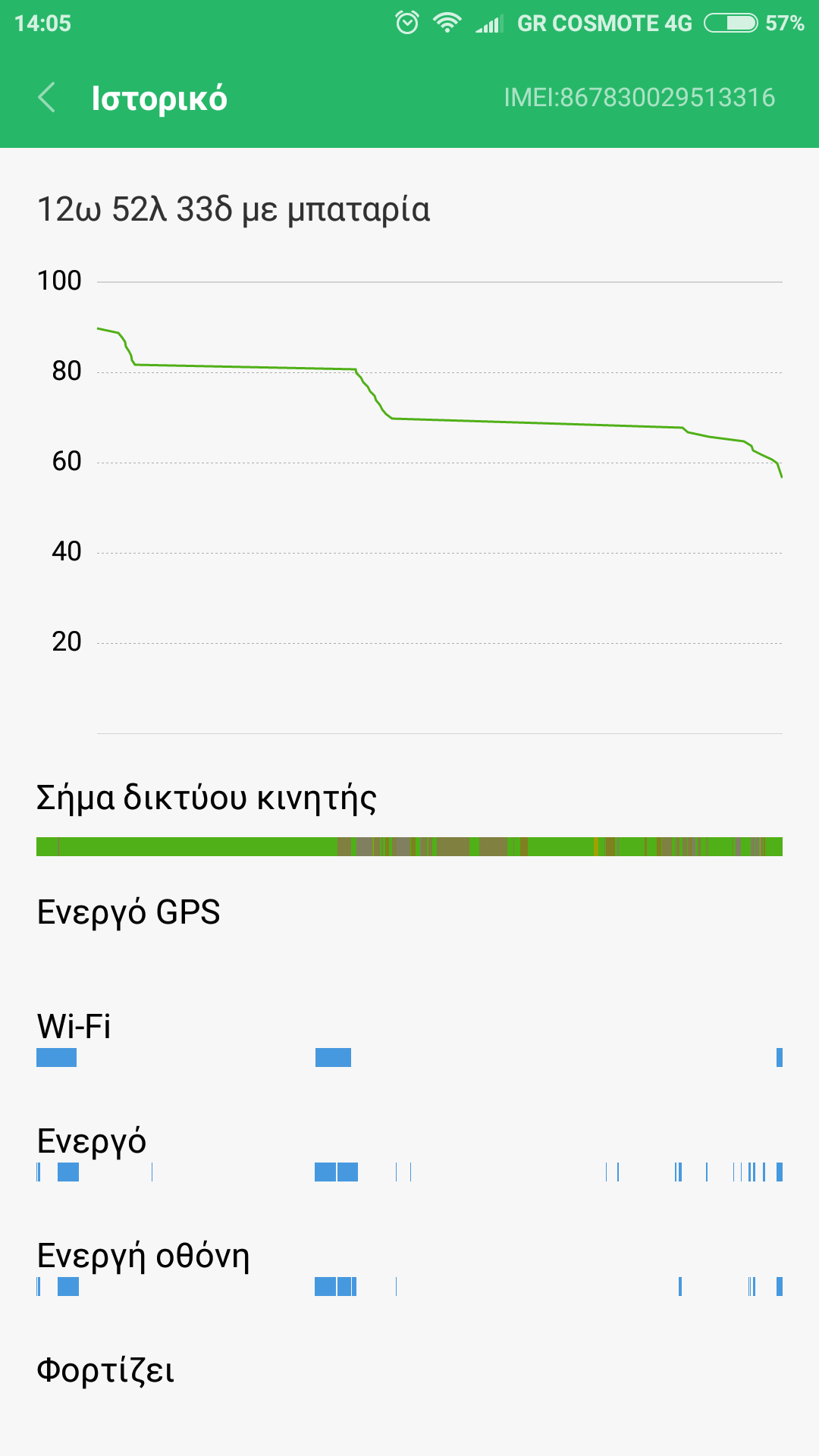 mi4c βολίδα πάλι .... Ο συγχρονισμός τέλος δεν συνχρονιζει όπως την προηγούμενη...ή μπαταρία νομίζω ότι είναι λίγο πιο large στην κατανάλωση της από την προηγούμενη....ξεκίνησα το μύνημα στο ποσοστό 60% τώρα είναι 56 % με δυο φωτό screen που τραβηξα ......