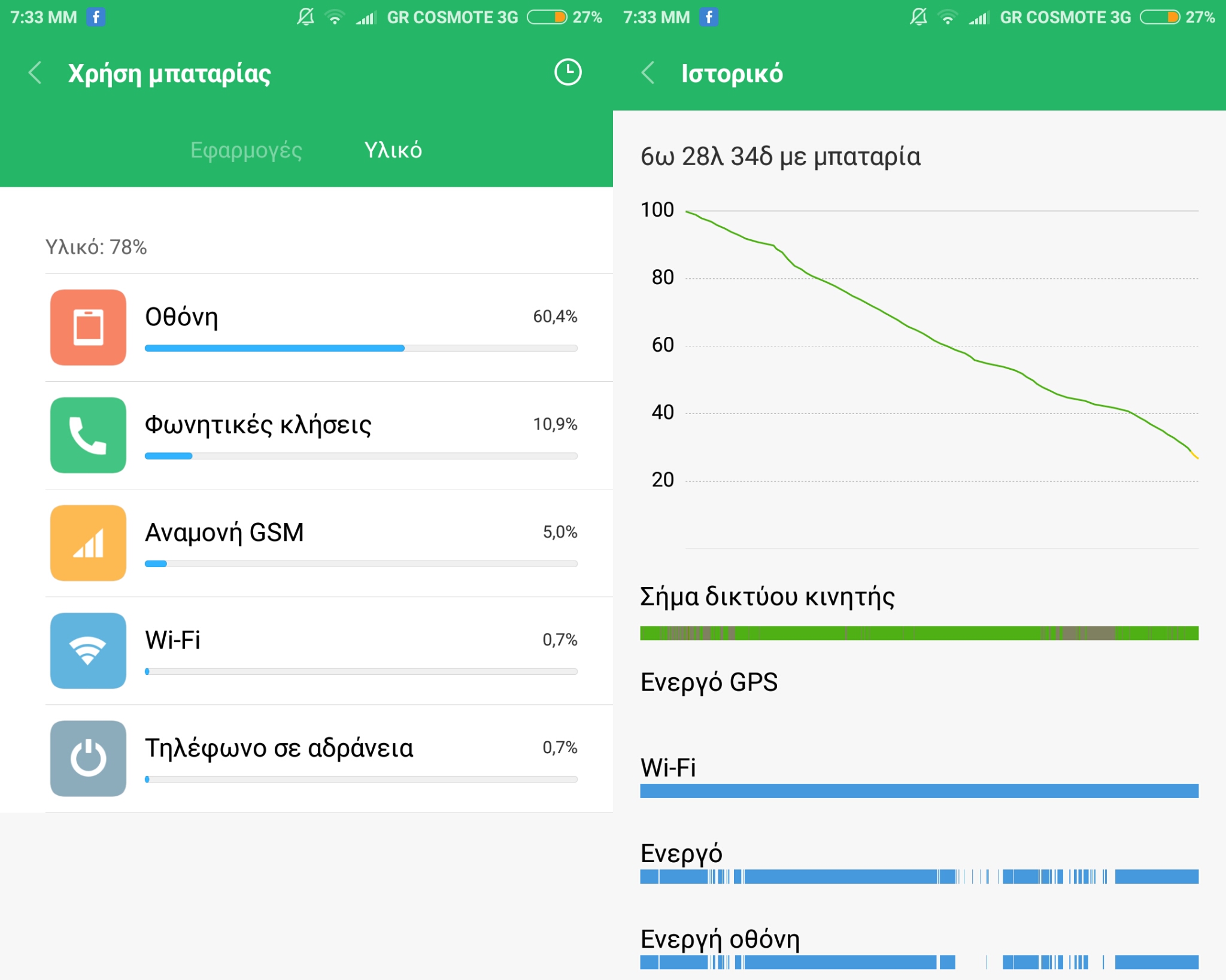 Λοιπόν μετά και από το τελευταίο clean install της τελευταίας stable από xiaomi.eu για πρώτη φορά είδα αυτονομία 4 ώρες οθόνης. Παρόλα αυτά η μπαταρία έπεφτε 10% το ένα βράδυ και 13% το επόμενο.