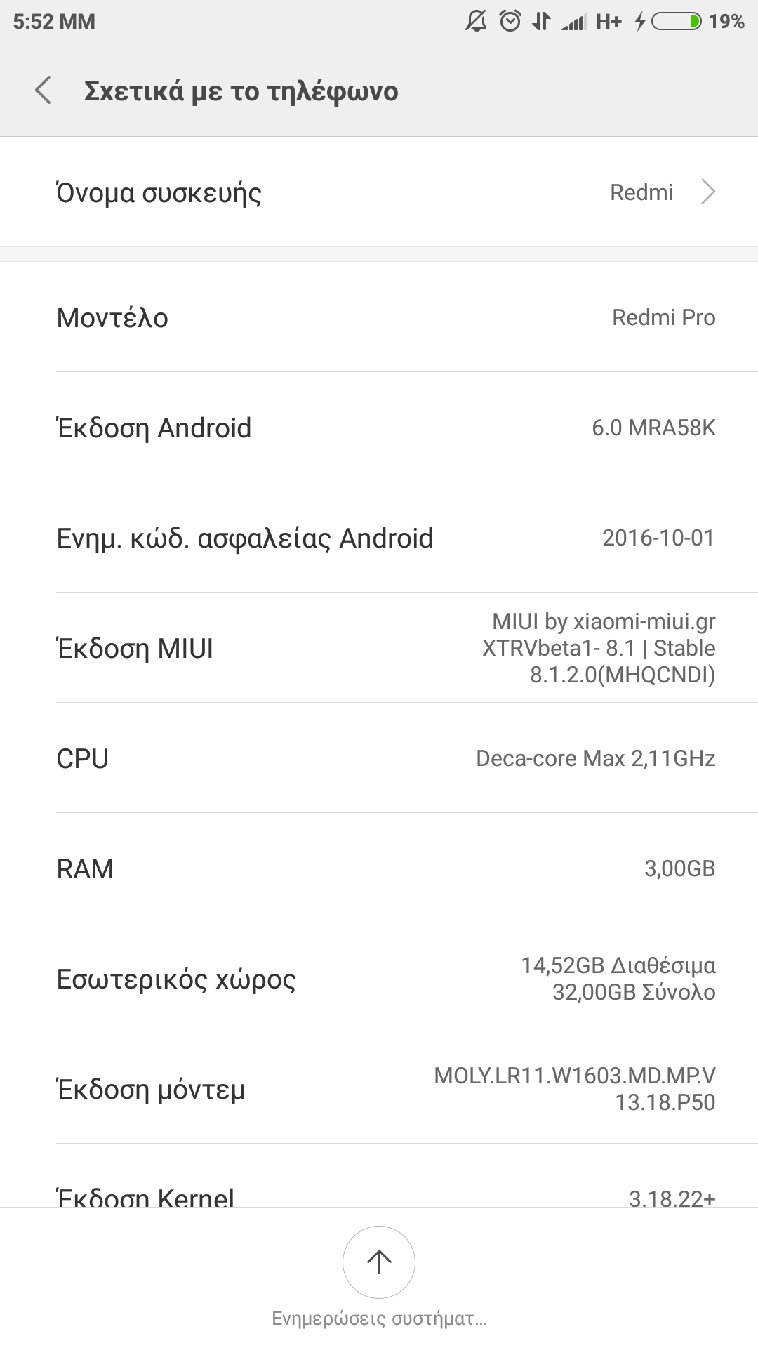 3 Δεκ 19th 2016, 5:52pm Ο/H NasDriver έγραψε: Και μία φώτο από το Σχετικά με το τηλέφωνο με την ρομ που έχει θα βοηθούσε ακόμα περισσότερο Παρακαλώ Images Screenshot_2016-12-19-17-52-20-247_com.android.settings.png 140,77 kB, 1.080×1.920, viewed 130 times