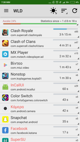 5 Δεκ 19th 2016, 7:40pm Ο/H NasDriver έγραψε: Αν σου είναι εύκολο βάλε αυτές τις εφαρμογές να δούμε που γίνεται η μεγάλη κατανάλωση: Η πρώτη δείχνει αναλυτικά τις εφαρμογές και η δεύτερη δείχνει αν μπαίνει σε deep sleep mode Images Screenshot_2016-12-19-19-38-08-340_com.uzumapps.wakelockdetector.png 274,81 kB, 1.080×1.920, viewed 138 times Screenshot_2016-12-19-19-38-19-941_com.uzumapps.wakelockdetector.png 268,5 kB, 1.080×1.920, viewed 120 times Screenshot_2016-12-19-19-38-59-039_com.uzumapps.wakelockdetector.png 209,09 kB, 1.080×1.920, viewed 136 times Screenshot_2016-12-19-19-38-39-071_com.bvalosek.cpuspy.realgpp.png 274,7 kB, 1.080×1.920, viewed 137 times Screenshot_2016-12-19-19-38-25-136_com.gsamlabs.bbm.png 216,87 kB, 1.080×1.920, viewed 134 times