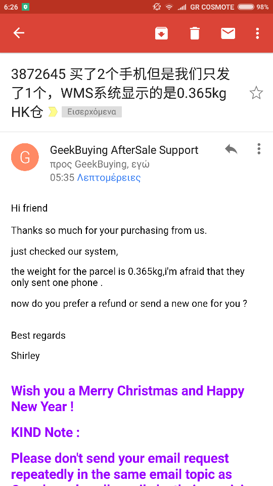 Παραγγελία δύο κινητών - Παραλαβή ενός. (Refund)