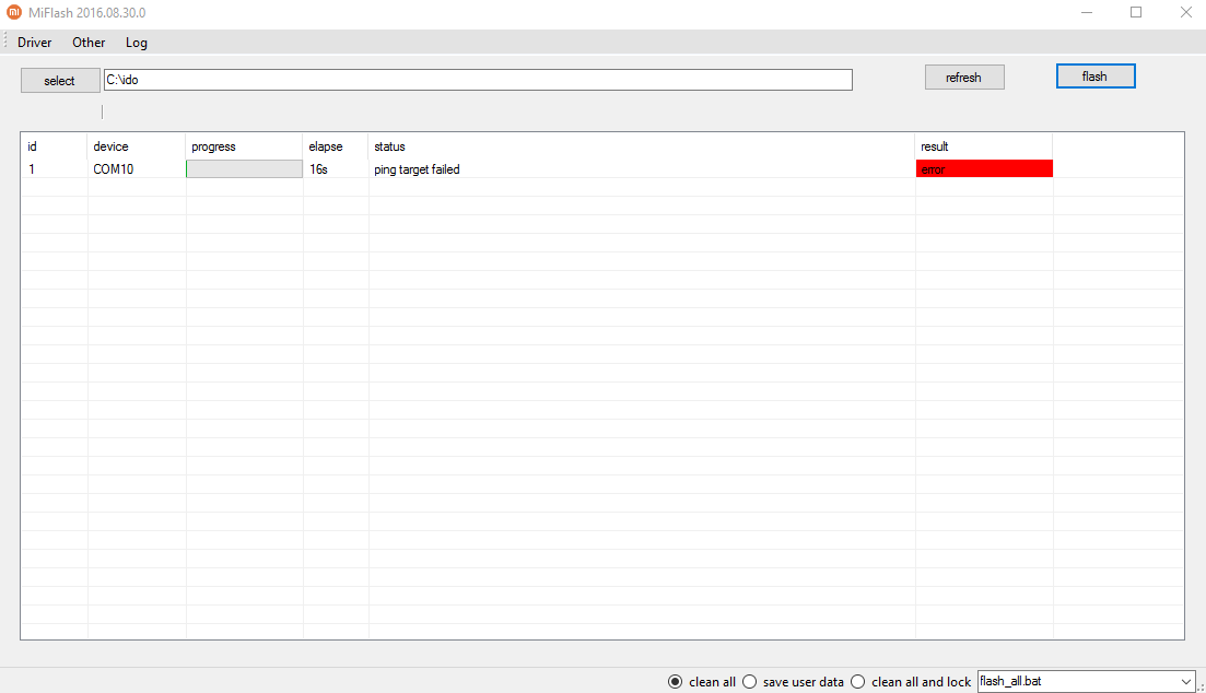 Παρόλα αυτά το MiFlash δεν μου αναγνωρίζει το κινητό (βήμα 7) μετά το refresh.