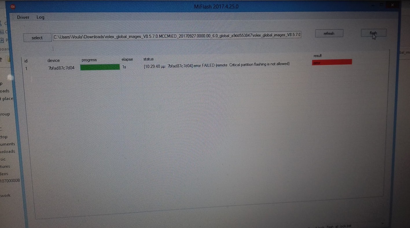 Καλησπερα. Εκανα δοκιμη να το φλασαρω με το xiaomiflash κατεβαζοντας κ αποσυμπιεζοντας την σωστη ρομ αλλα μου εβγαλε μηνυμα λαθους..τι μπορει να εχω κανει λαθος?