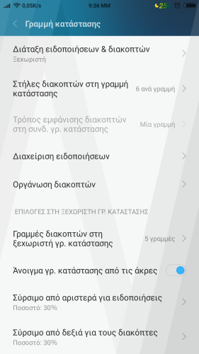 [Ποσοστό από αριστερά ή δεξιά για άνοιγμα ειδοποιήσεων ή διακοπτών - Ισχύει το ίδιο και για το άνοιγμα της ξεχωριστής γρ. κατάστασης από τον launcher/desktop]