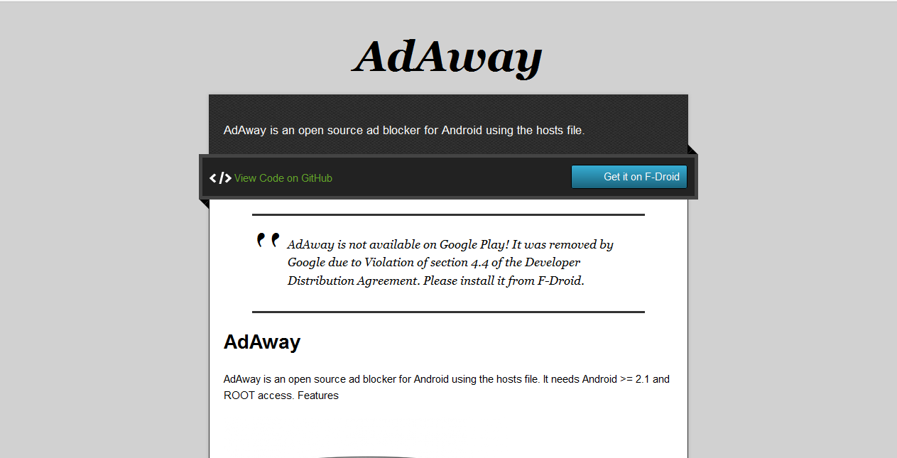 Θα μας μεταφέρει στην σελίδα του AdAway
