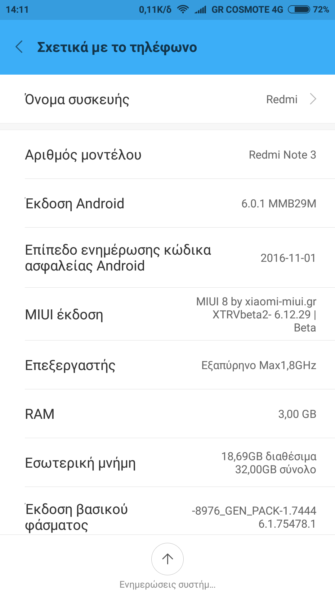 Δεν ξέρω τι με έπιασε τελευταίες ώρες της χρονιάς και είπα να κάνω ένα δωράκι αναβάθμιση στο τηλέφωνο μου. Του είχα περασμένη την 6.8.18 Developer όπως φαίνεται και στο συνημμένο και προσπάθησα να περάσω την XTRV-6.12.69. Το λάθος μου ηταν που δεν κρατησα backup. Από TWRP έκανα wipe dalvik + cache και μετα φλάσαρα την XTRV-6.12.69. Ακολούθησε reboot και μετά από ώρα και αφού γέμισε η άσπρη μπάρα, εμφανίστηκε η αρχική οθόνη miui και μετά παγώνουν όλα. Επαναλαμβάνω τη διαδικασία αλλά το αποτέλεσμα το ίδιο. Κατόπιν δοκιμάζω να σβήσω τα πάντα από TWRP (δηλ dalvik+cache+data+system) και φλασάρω την XTRV beta 1 stable 8.0.5.0. Το αποτέλεσμα το ίδιο, δηλαδη βλέπω αρχική οθόνη MIUI και μετά κολάει. Δοκιμάζω τέλος την THUNDER 6.10.20 και πάλι τα ίδια.