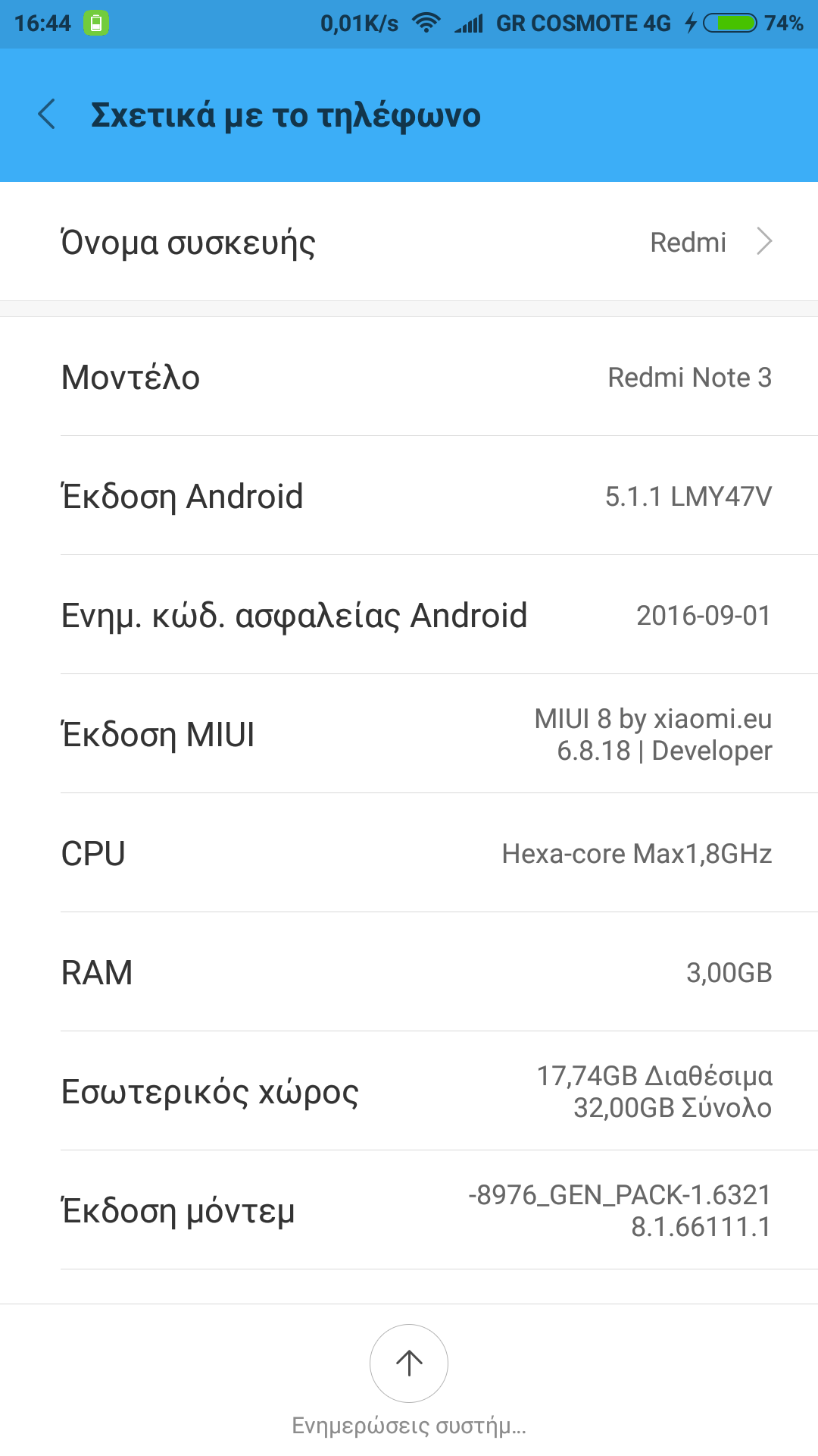 Δεν ξέρω τι με έπιασε τελευταίες ώρες της χρονιάς και είπα να κάνω ένα δωράκι αναβάθμιση στο τηλέφωνο μου. Του είχα περασμένη την 6.8.18 Developer όπως φαίνεται και στο συνημμένο και προσπάθησα να περάσω την XTRV-6.12.69. Το λάθος μου ηταν που δεν κρατησα backup. Από TWRP έκανα wipe dalvik + cache και μετα φλάσαρα την XTRV-6.12.69. Ακολούθησε reboot και μετά από ώρα και αφού γέμισε η άσπρη μπάρα, εμφανίστηκε η αρχική οθόνη miui και μετά παγώνουν όλα. Επαναλαμβάνω τη διαδικασία αλλά το αποτέλεσμα το ίδιο. Κατόπιν δοκιμάζω να σβήσω τα πάντα από TWRP (δηλ dalvik+cache+data+system) και φλασάρω την XTRV beta 1 stable 8.0.5.0. Το αποτέλεσμα το ίδιο, δηλαδη βλέπω αρχική οθόνη MIUI και μετά κολάει. Δοκιμάζω τέλος την THUNDER 6.10.20 και πάλι τα ίδια.