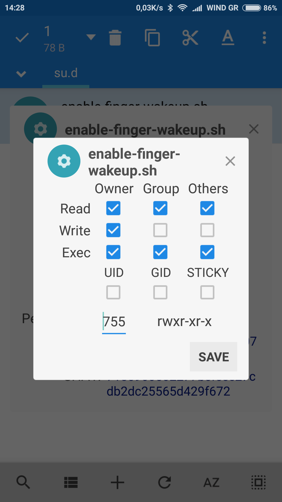 3) Κατεβάζουμε το zip από εδώ η εδώ και το αποσυμπιέζουμε. Παίρνουμε το αρχείο enable-finger-wakeup.sh και το ρίχνουμε χύμα μέσα στην μνήμη του τηλεφώνου.