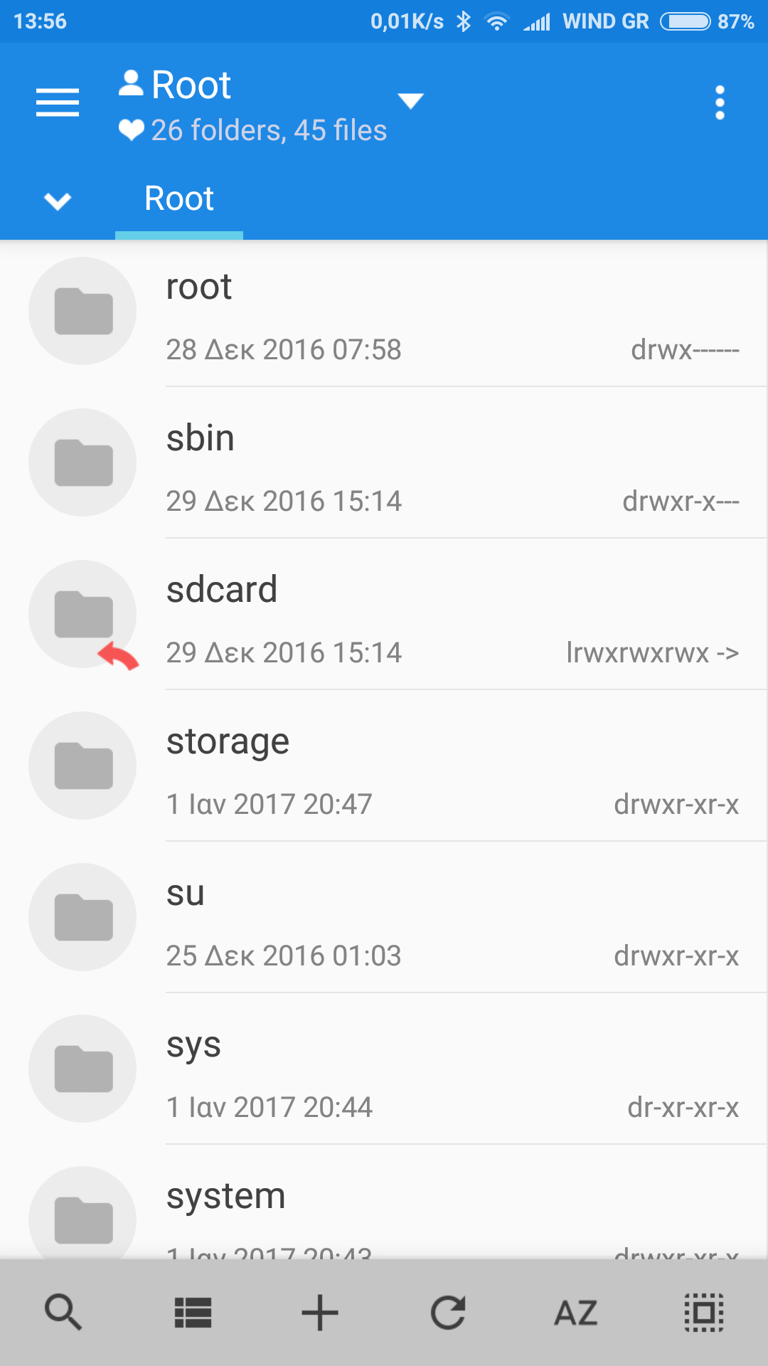 Πάνω αριστερά έχει 3 οριζόντιες γραμμές (δίπλα γράφει sd card) πατάμε root βρίσκουμε το φάκελο su πατάμε μέσα και επιλέγουμε το su.d