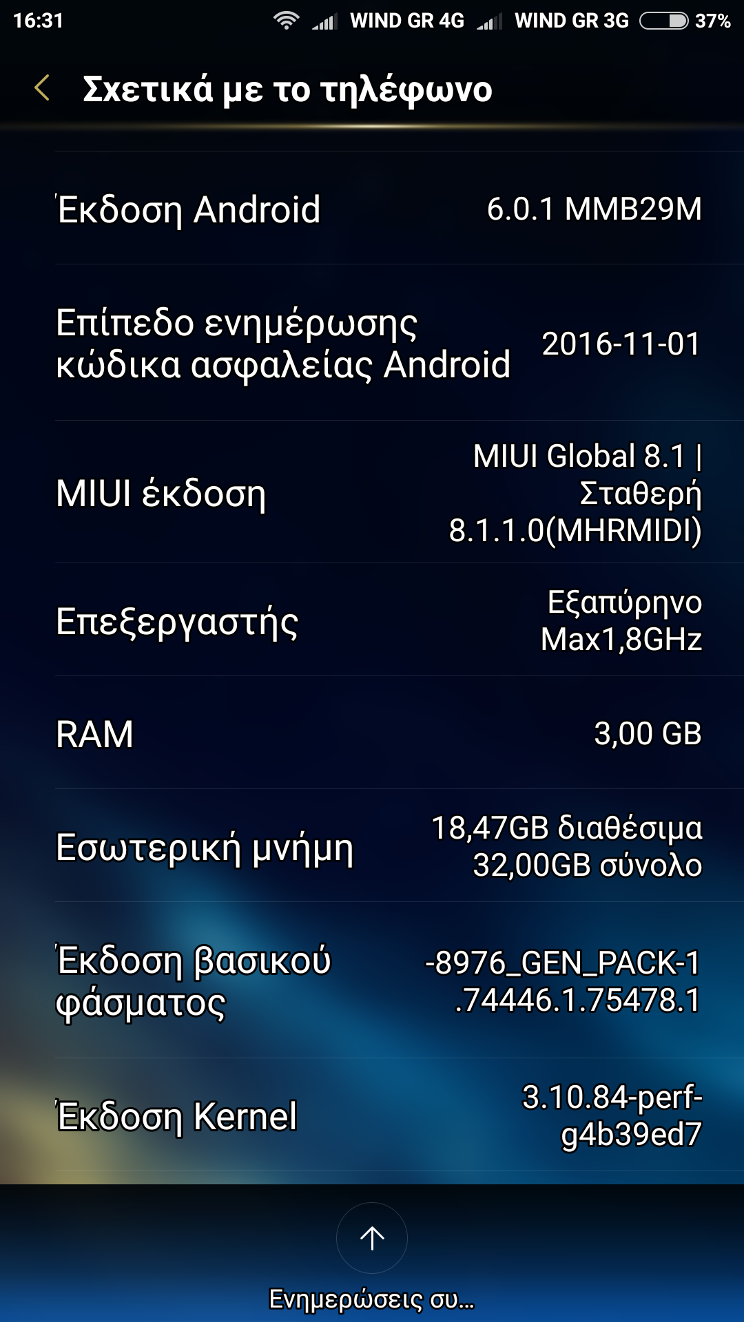Ανέβασε μία φώτο με αυτά που δείχνει στο about phone της συσκευής σου.