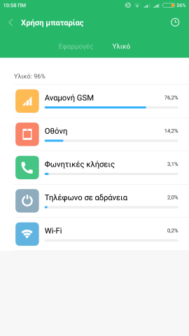 Επίσης από τις φώτο βλέπω ότι αν και 79% το αναμονή GSM, έπεσε από το 29% στο 24% με 27 λεπτά ανοικτή οθόνη.