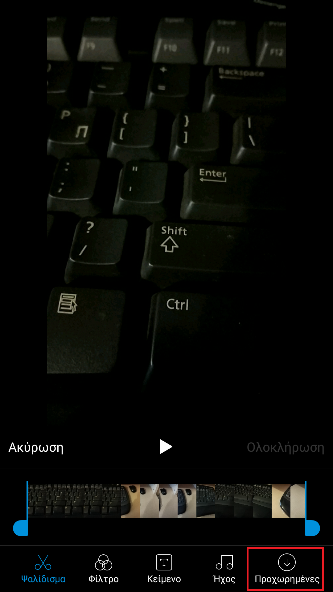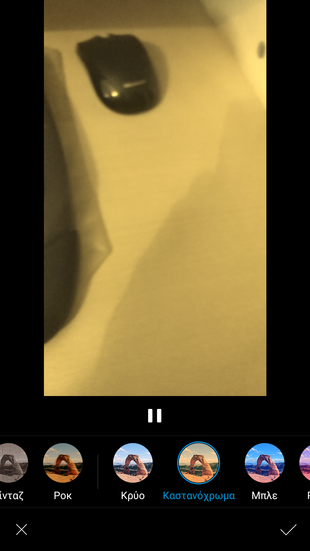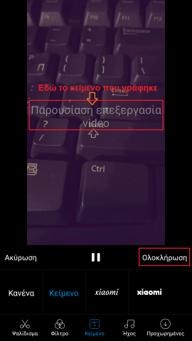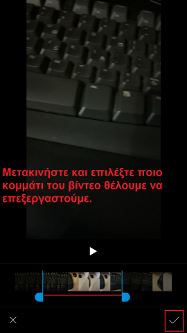 Πρώτη επιλογή είναι το Ψαλίδισμα, σημαίνει ότι μπορείτε να αφαιρέσετε κάποιο μέρος του βίντεο. Μετά το κόψιμο, tap on Tick. Το βίντεο θα είναι κομμένο.