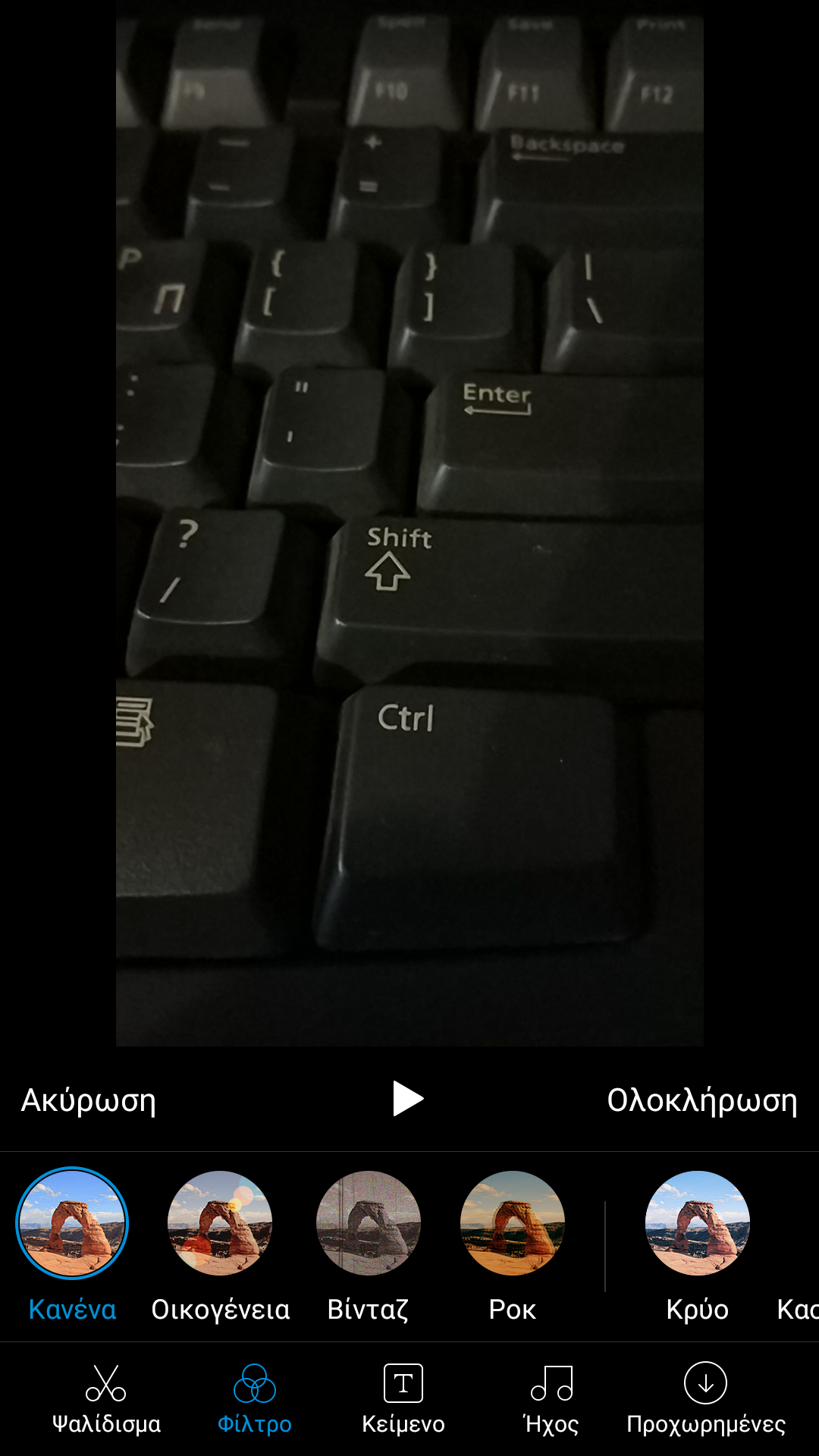 Επόμενη επιλογή είναι το Φίλτρο, μπορείτε να δώσετε πολλά εφέ στο βίντεό σας. Μπορείτε να επιλέξετε από 14 Φίλτρα. Μετά την επιλογή που επιθυμείτε φίλτρο σας, πατήστε το Ολοκλήρωση κάτω δεξιά γωνία για να το εφαρμόσετε.