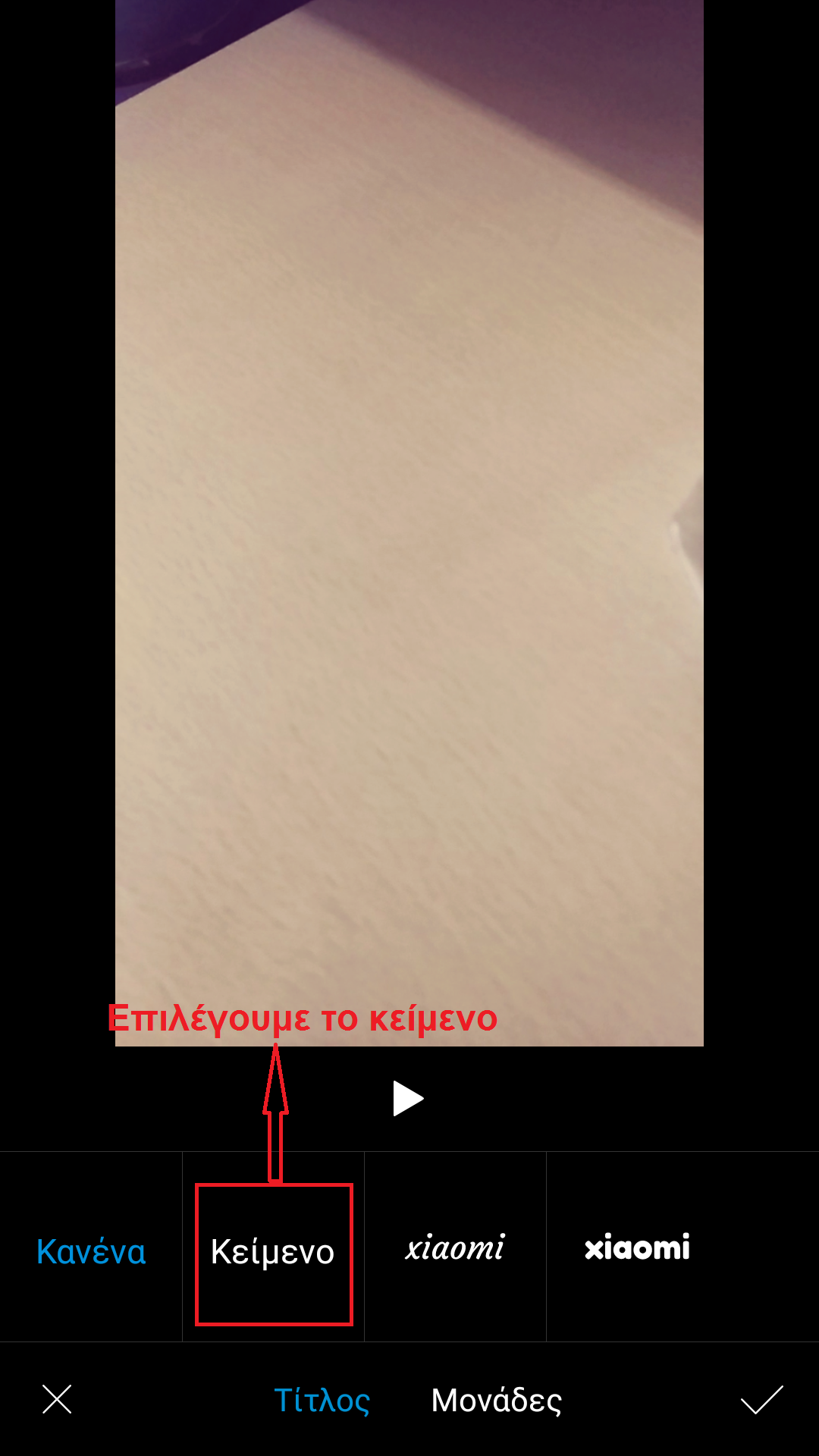 Πρώτη επιλογή είναι το Ψαλίδισμα, σημαίνει ότι μπορείτε να αφαιρέσετε κάποιο μέρος του βίντεο. Μετά το κόψιμο, tap on Tick. Το βίντεο θα είναι κομμένο.