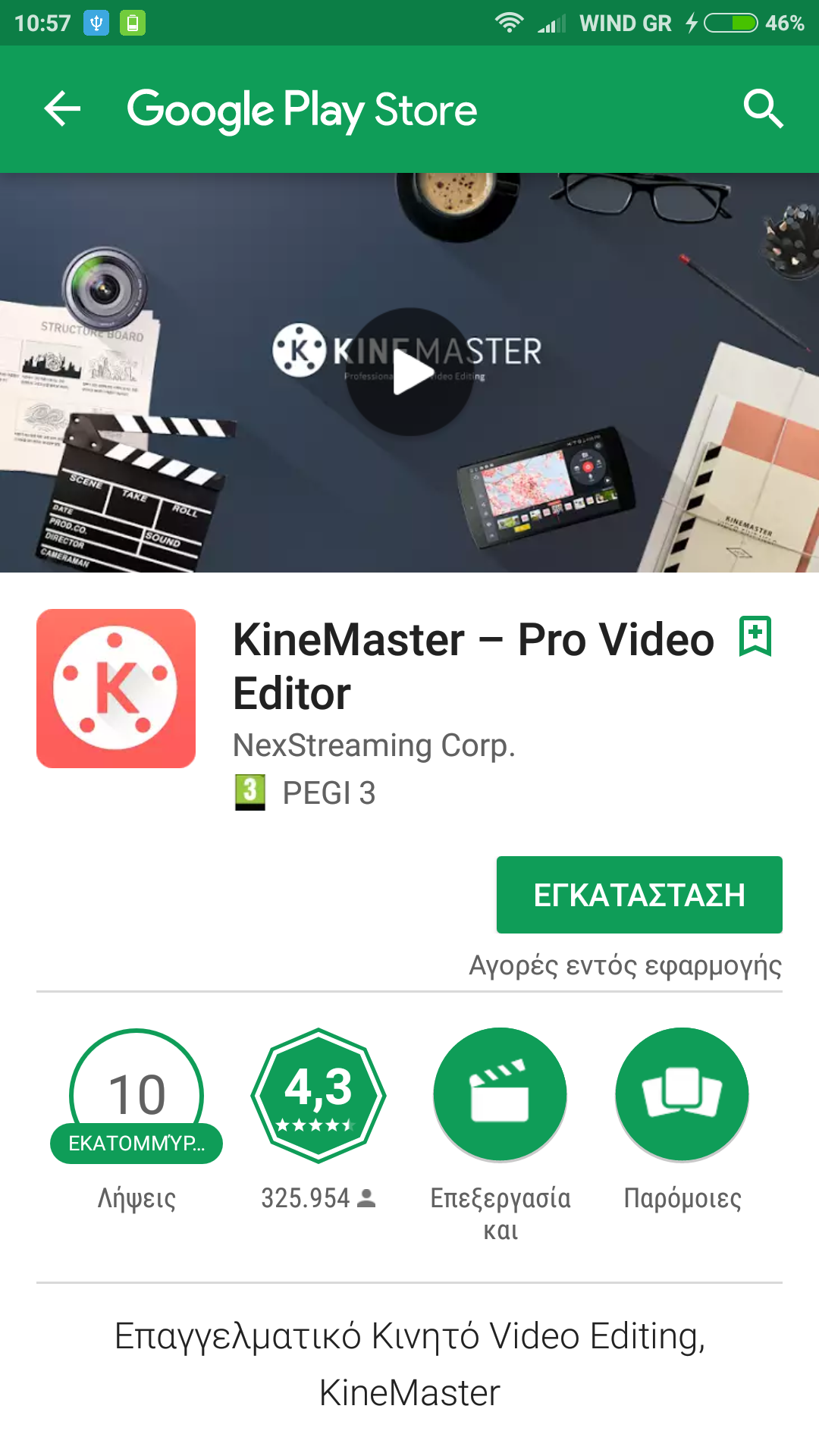 Εάν θέλουμε περισσότερες επιλογές επεξεργασίας των βιντεό μας θα επιλέξουμε το για Προχωρημένους τώρα θα έχουμε μετάβαση στο play store και στην εφαρμογή KineMaster - Pro Video.