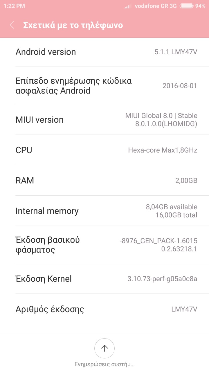 Καλησπέρα και καλώς σας βρήκα. Ένας φίλος μου αγόρασε το xiaomi redmi note 3 pro 2/16 και έχει ένα θέμα με την μπαταρία του. Το κινητό χωρίς σημαντική χρήση θέλει φόρτιση κάθε 1,5 ημέρα. Το μεγαλύτερη κατανάλωση μπαταρίας γίνεται όταν το κινητό είναι σε κατάσταση standby. Δηλαδή το βράδυ για 8-10 ώρες καταναλώνει 20-30% μπαταρία. Το κινητό έχει την έκδοση stable 8.0.1.0.0 (LHOMIDG) και από όσο έχω μάθει είναι unofficial. Θα ήθελα να μου προτείνετε μία rom να βάλω στο κινητό μπας και στρώσει αλλά και πως θα την βάλω γιατί δεν έχω ξανά ασχοληθεί με Xiaomi. Ευχαριστώ!