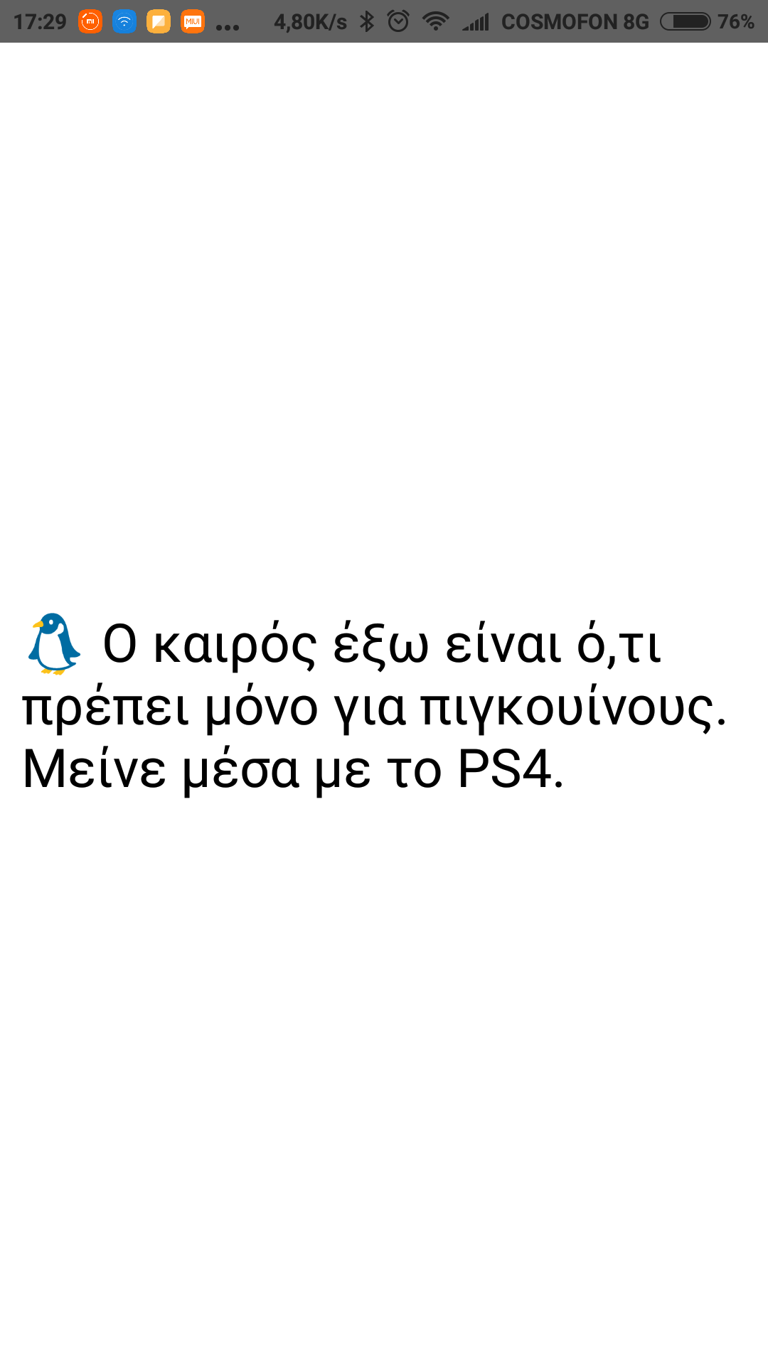 Γιατί ποιός σου είπε ότι μιλάγαμε για πιγκουίνους το ανέκδοτο είχε να κάνει με ελέφαντα. Εσείς όλοι μαζί έχετε το βάρος του αριστερού του..... ποδιού.