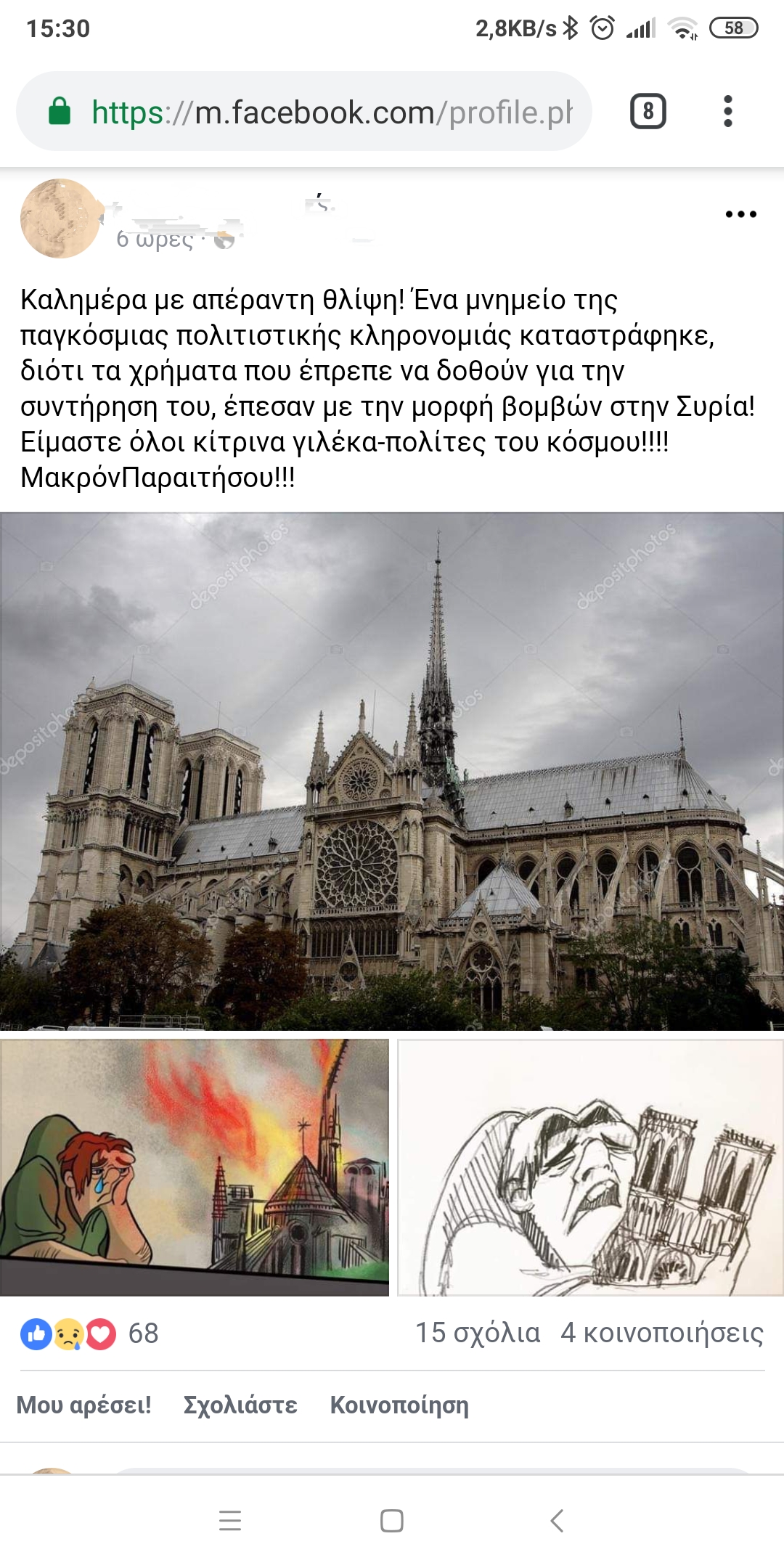 Τι δεν θα σχολιάσετε τίποτα που ένα μνημείο παγκόσμιας πολιτιστικής κληρονομιάς έγινε στάχτη ;;; Μήτσο....................