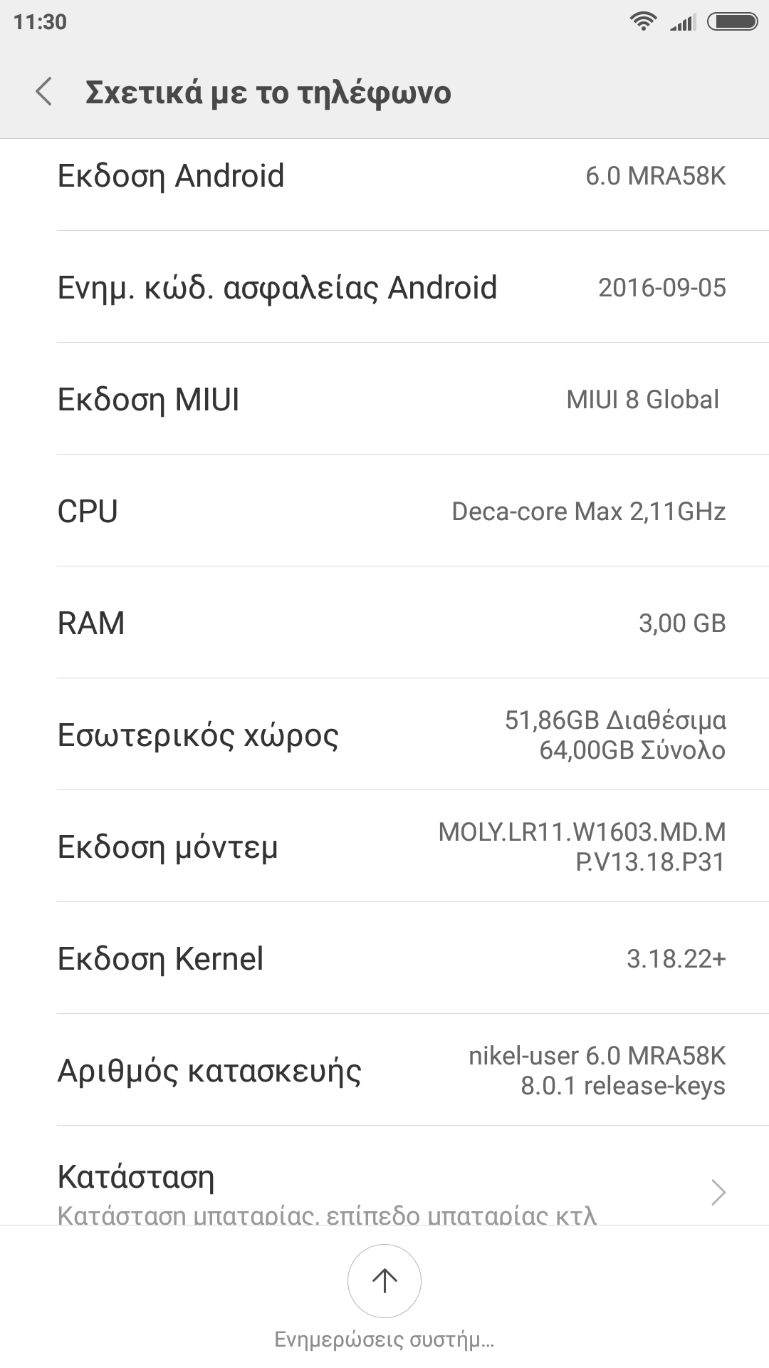 Μου ήρθε πριν δύο εβδομάδες από Γερμανία ένα redmi note 4 με Miui 8 Global Miui 8 8.0.1.0 MBFCNDG Weeckly. Το κινητό έχει ελληνικό μενού, λειτουργεί άψογα και δεν έχω κανένα πρόβλημα. Δεν μου κατέβασε μέχρι τώρα κανένα update, (το ζήτησα και χειροκίνητα). Το ερώτημα είναι , αξίζει να αλλάξω τη ρομ σε official για να έχω αυτόματες ενημερώσεις ??